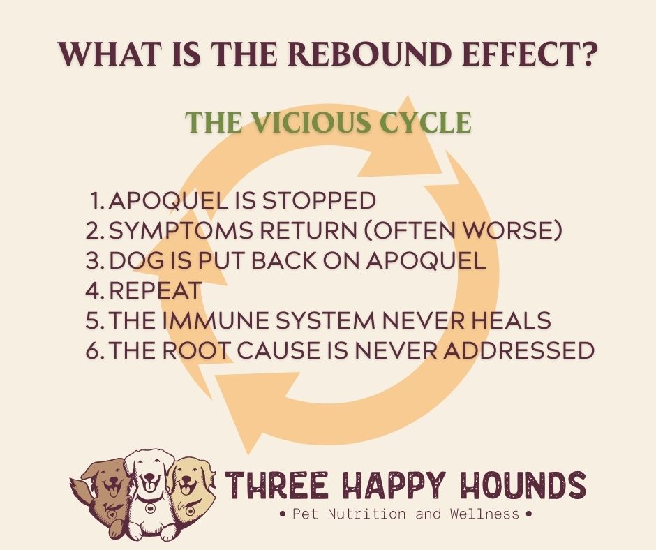 This is the Apoquel rebound effect, and it's one of the most common, most frustrating challenges we see at Three Happy Hounds.